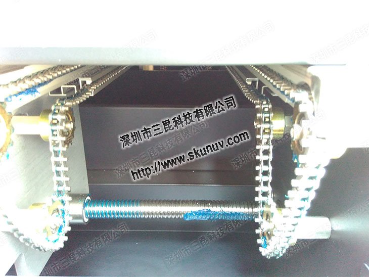 10、保證光固化機(jī)器各活動(dòng)部位的潤(rùn)滑,主被動(dòng)托輥、軸承,鏈條和傳動(dòng)輪應(yīng)每半年上一次黃油;其他部位及電機(jī)一年一次,前后輥、托輥和傳動(dòng)網(wǎng)咬合部分不允許使用任何潤(rùn)滑脂。